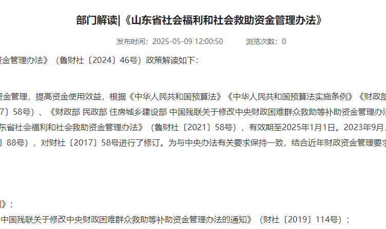 部门解读|《山东省社会福利和社会救助资金管理办法》